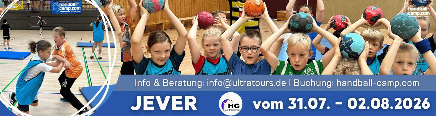 Nachdem wir sowohl 2017 als auch 2025 mit großer Freude je ein Handballcamp in Jever veranstaltet haben, freuen wir uns umso mehr, erneut mit der HG Jever / Schortens gemeinsam ein spannendes Ferien-Handballcamp für Mädchen und Jungen im Alter von 6 – 14 Jahren anbieten zu können!