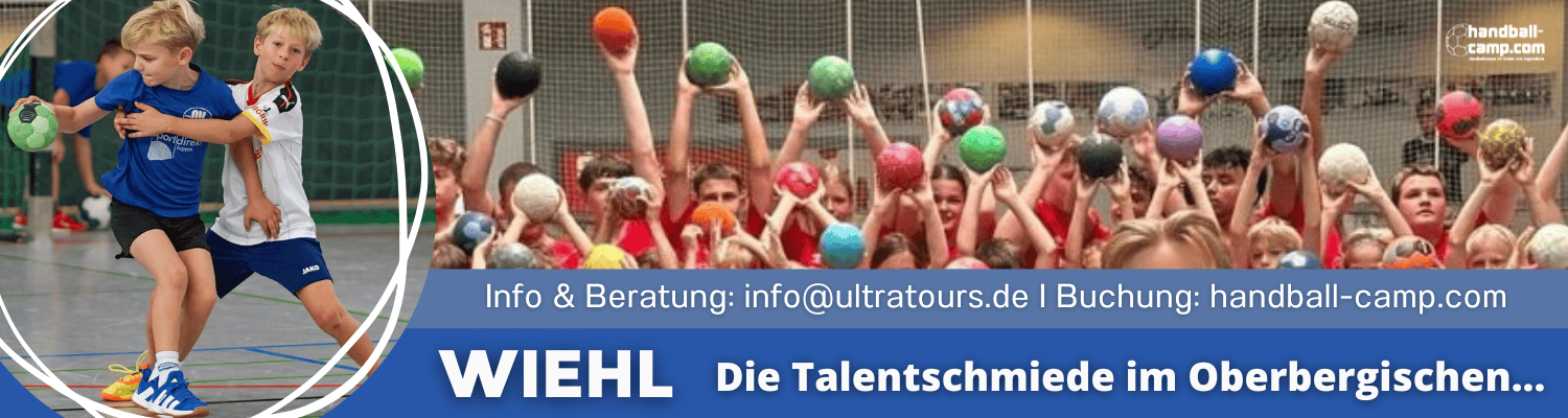 Die HUMMEL Handballcamps in Wiehl sind echte Traditionscamps in unserem Camp-Programm. Seit zehn Jahren bieten wir in allen Schulferien sowohl „klassische“ Handballcamps als auch im speziellen „Camps für Handballtorhüter / Handballkeeper“ im oberbergischen Wiehl bei Gummersbach an. Die „Wiehl-Camps“ sind für 8 – 17-jährige Handballerinnen und Handballer konzipiert.